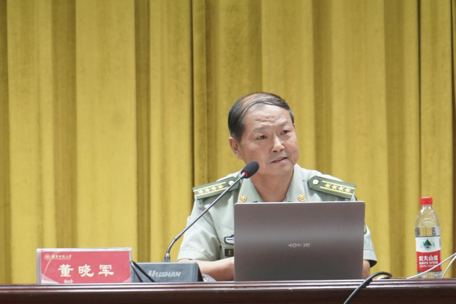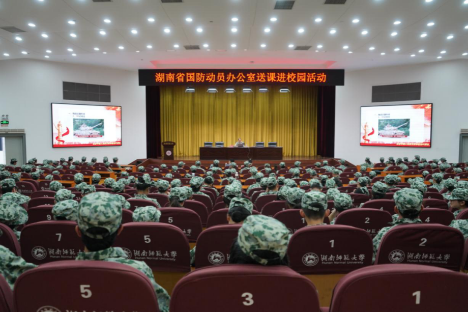 (通讯员 陈艺婷 吴波)10月14日下午,一场主题鲜明、内容丰富的“国防教育第一课”在威廉希尔中文网站平台国际学术报告厅成功举行。此次活动由学生工作部、武装部组织,湖南省国防动员办公室会同省人防协会协助开展。活动特邀原国防科技大学军政基础教育学院军事学教授董晓军来校,作了以《利剑擎天慑四方铁甲洪流震八荒——93大阅兵新装备探秘》为主题的专题授课。学生工作部、武装部部长陈文雄,学生工作部、武装部副部长段婷出席活动,300余名师生代表参与学习。