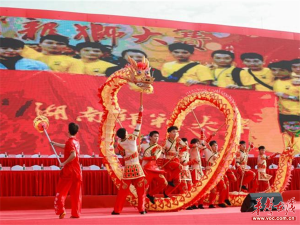 典礼开始前,来自体育学院和音乐学院的学生代表带来了龙狮表演、竹笛合奏、流行歌曲串烧、舞蹈《只此青春》 等暖场节目。