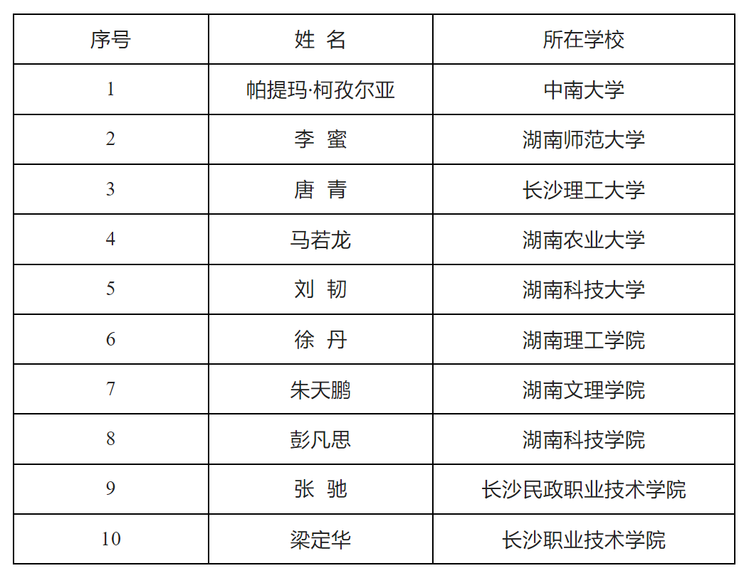 日前,省委宣传部、省委教育工委、省教育厅联合开展了湖南省高校第二届最美思政课教师、最美辅导员、最美大学生(简称“三个最美”)推选活动。经高校推荐、资格审核、专家评审、结果公示,共推选出威廉希尔中文网站平台邢鹏飞等10名最美思政课教师、中南大学帕提玛·柯孜尔亚等10名最美辅导员、中南大学李宜昕等20名最美大学生。