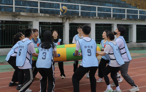 在团队风貌展示环节,各学院代表队用队旗、队名、口号及才艺充分展示本队的实力和特色,博得现场阵阵掌声和欢呼声。 在珠行万里、众星捧月、跳长绳、袋鼠跳等比赛项目中,各学院队伍齐心协力,互帮互助,奋勇拼搏,满怀信心,在操场上大显身手,现场氛围活跃热烈。
