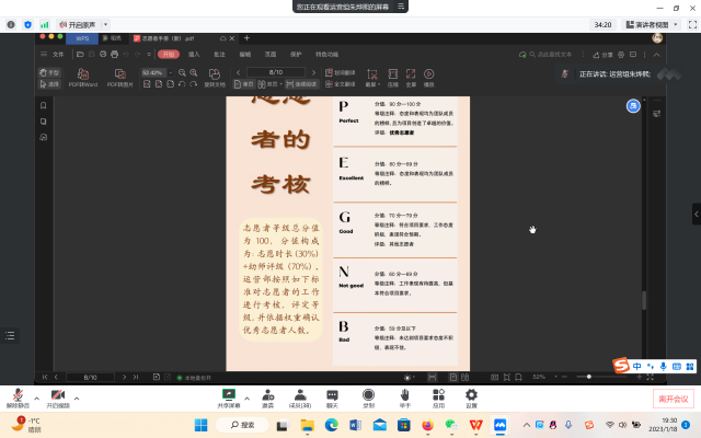 运营组朱烨熙讲解童书千行志愿者管理手册,详细解读了志愿者行为守则、志愿者权利与义务、志愿者考核标准等内容。刘丹介绍了志愿者激励制度和优秀志愿者评选条例,并对志愿者的疑惑进行了解答。