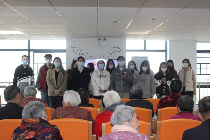同学们为福利中心的老人们带来长笛演奏、歌曲演唱、普法小品等节目,丰富多样的节目形式迅速拉近了同学们与老人之间的距离,现场传来一阵阵愉悦的欢笑声。