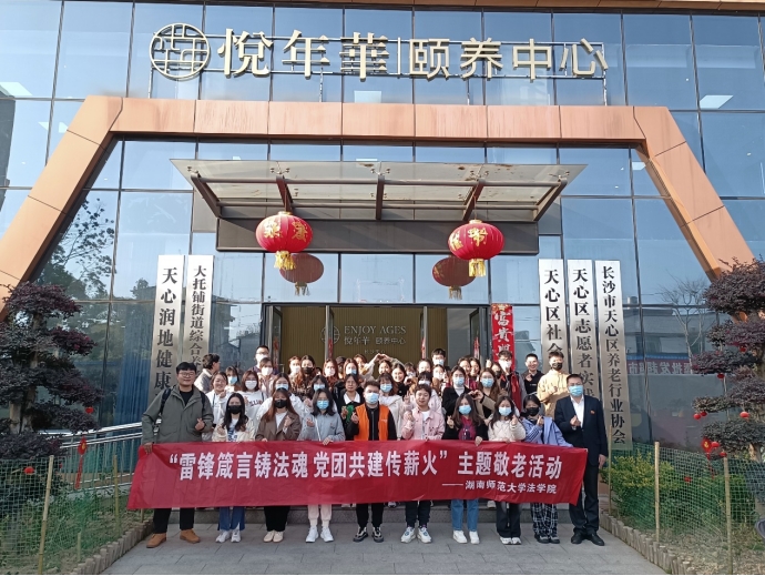 (通讯员 唐铭泽 刘思汝 侯辰霖)3月5日下午,法学院志愿者团队赴天心区社会福利中心开展“雷锋箴言铸法魂,党团共建传薪火”主题敬老活动。法学院党委副书记曹俊峰、法学院2020级辅导员周凌月、法学院2022级辅导员廖星参与此次活动。