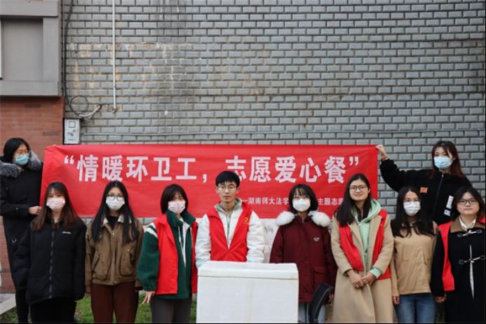 (通讯员 吴玥 张娅晴)3月5日早晨,法学院法律义工及维权协会在天马学生公寓门口开展以“情暖环卫工,志愿爱心餐”为主题的送餐活动,进行相关的普法宣传。