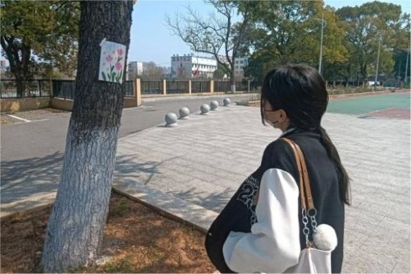 此次活动开始前欧阳熙和李欣泽分别在张公岭校区和二里半校区购置彩色马克笔和纸,布置活动场地。3月8日,会员前往指定活动地点获取材料,将自己内心所想记录下来,完成绘画作品。欧阳熙和李欣泽收集会员绘画作品,并张贴于大树上和小黑板上,以供会员和校内师生观赏。12日,心理学社志愿者将粘贴于校园内的活动作品回收,清扫场地。