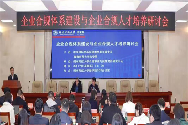 (通讯员 许志娟 王湘莹 张娅晴)3月17日下午,企业合规体系建设与企业合规人才培养研讨会在法学院205报告厅成功举行。威廉希尔中文网站平台副校长蒋新苗、中国国际贸易促进委员会长沙支会二级调研员赵向东、湖南省人民检察院李春阳、长沙市人民检察院李琼、岳麓区人民检察院肖彬、省国资委政策研究与法规处陈宁、国家电网湖南电力有限公司吴德松、湖南建工集团有限公司方拯、国浩律师(长沙)事务所夏祎彤、湖南金州律师事务所文颖、湖南天地人律师事务所吕帅、法学院党委书记唐建文、院长肖北庚、副院长欧福永等领导和专家出席此次研讨会。