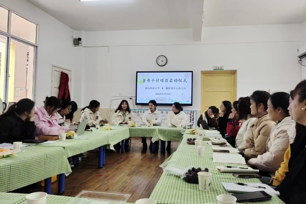(通讯员 曹馨予 王欣辰 文艺)3月18日,教育科学学院“童书千行”项目组赴益阳市安化县烟溪镇中心幼儿园开展项目启动仪式。此次仪式由运营组刘丹主持,中心幼儿园园长刘瑞娟、项目负责人文艺出席启动仪式,全体幼师及项目组成员参加此次仪式。