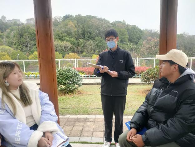 王路路与队员交流关于实习生活的感悟,肯定了各个队员第二周的实习工作情况,并鼓励队员们不要松懈,再接再厉。在讨论环节中,全体队员依次分享自己在本周实习工作中的心得以及遇到的问题。刘潇宇提出自己进行文言文作业讲评时的心得,王路路表示,初中文言文教学与高中不同,还应密切结合学情及学生接受情况,同时综合考虑指导老师建议和文本自身特点,以学生为本开展教学。在总结环节中,队长王路路对后期实习工作做进一步安排。