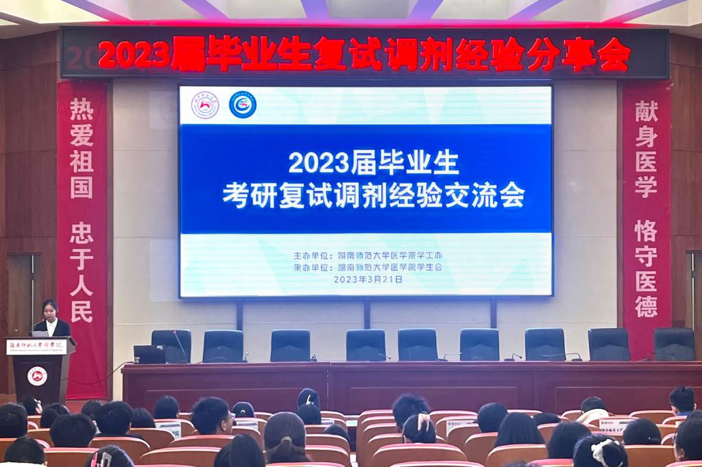 (通讯员 张人文 戈欢庆 张茗轩)3月21日中午,由医学院学工办与学生会联合举办的考研复试经验分享会在仁医楼学术报告厅举行。医学院院长何祖平、党委副书记陈松和部分辅导员出席会议。2018级检验班毕业生蔡秀怡、卜海燕、2017级卓医班毕业生刘冬花、2017级预防班毕业生谭俣宬以及医学院部分2020级学生参加会议。2022级临床一班蒋冰主持会议。