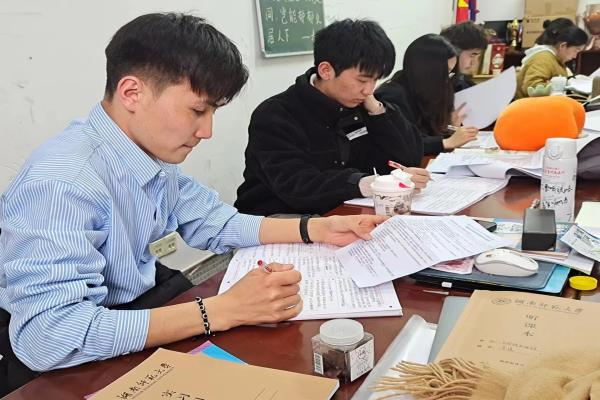 工作之初,彭珍对实习队的到来表示热烈欢迎,对实习队成员提出了几点要求以及期望。随后,彭珍分析了试卷的考试范围、考试难度以及考试重点,说明阅卷需要注意的问题。随后,实习队成员以用心、细心、信心的态度认真阅卷,于2月24日上午完成本次阅卷工作。最后,实习队在第一周总结会议上对本次阅卷工作进行了反馈总结与反思,为初三年级的教学实践提供参考。
