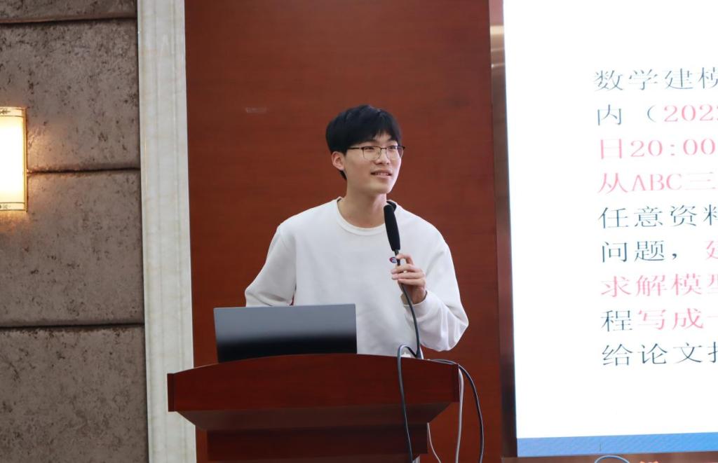 周钺尚介绍了数学建模竞赛,表示从大一开始就可以夯实专业知识基础,为参加竞赛做准备。章智恒讲解了机器学习及优化思想在数学建模中的应用,总结并分享了自己参加数学建模比赛的经验。彭科荣讲解了论文撰写的流程与注意事项,介绍了查找资料的网站与方法,分享了自己参赛的心路历程和收获。最后,他们耐心解答了同学们提出的问题。