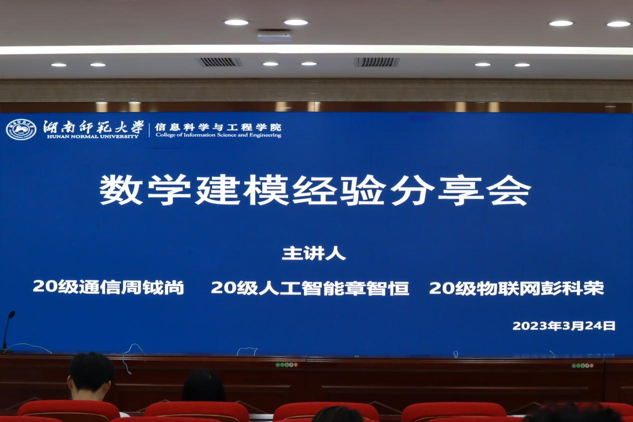 (通讯员 黄扬涵)3月24日晚,信息科学与工程学院(以下简称“信息院”)于中和楼342报告厅开展主题为“数学建模经验分享会”的精勤讲堂。此次精勤讲堂由陈燚主持,2020级人工智能专业的章智恒、2020级物联网专业的彭科荣、2020级通信工程专业的周钺尚担任主讲人。