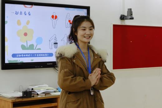 实习队的十八人根据带教老师分为四组,每组分别派一人代表小组展示准备课程。试讲期间,王艺橙、刘玉佩、蒋璧如、阳功铭依次上台,展示教案并结合多媒体设备进行15-25分钟的试讲,试讲内容包括情景导入、问题反思、比赛规则讲解等。四人的试讲各具特色,充分展示了实习队队员的教师素养。