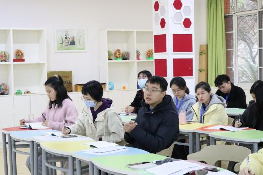在试讲指导中,实习队采用了自评、他评结合的形式来全面、客观地评价队员表现。袁春龙从教师姿态、语言运用、教学内容、教学目的等方面对试讲人进行了独到的点评,既充分肯定试讲人的优点,又明确提出其改进方向,最后也耐心解答了试讲人在备课中遇到的问题,以期帮助试讲人不断进步。