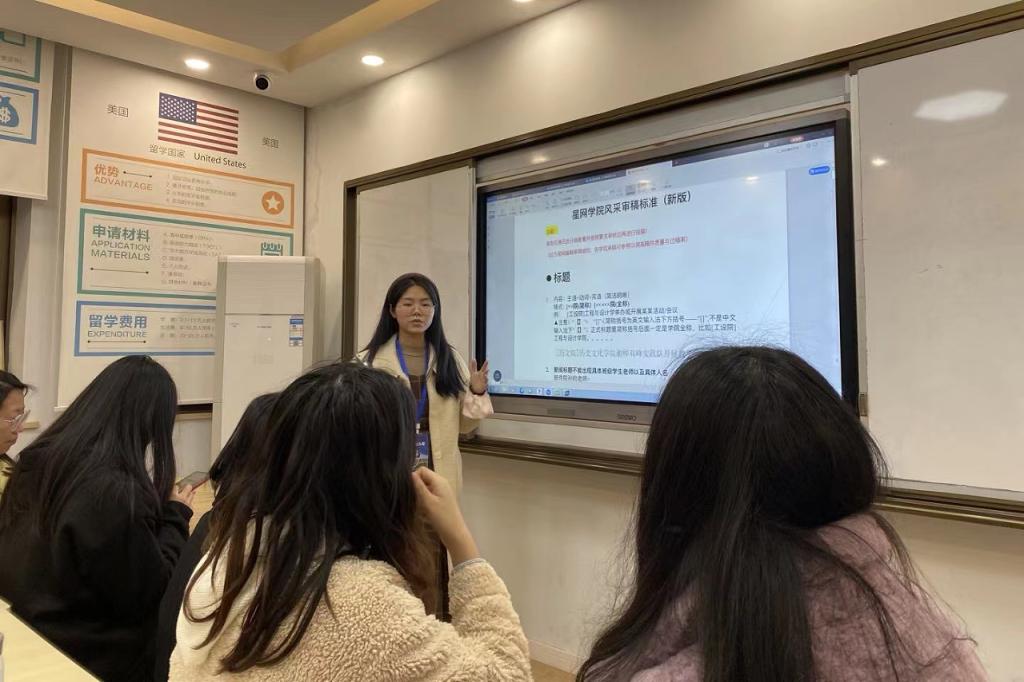 此次会议内容涉及过去一周的反思与总结以及未来一周的工作规划。会议开始,小学部、初中部和高中部的负责人依次汇报上周工作内容。随后,教研组组长肖德馨报告了本周实习队的课程安排和教研计划。宣传组组长姚雨怡总结上周宣传工作,并反思上周出现的工作疏漏,提出改进方法。生活组组长高洋博安排了值班和值日的工作,并简要说明上周打卡签到情况。之后,宣传组组员陈思怡对全体实习队员进行了新闻稿写作培训。实习队队员针对上周出现的问题进行集体探讨,并提出修改意见。各学部负责人根据大家的意见对工作安排进行调整。