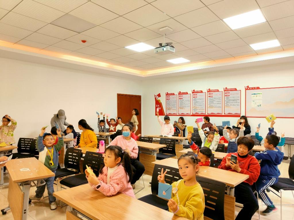 工作人员与志愿者一同在社区活动中心集合,工作人员介绍了相关设备的使用事项,以及和小朋友互动交流过程中需注意的细节。在简单的培训后,志愿者和参与活动的孩子们一同前往三楼多功能室。
