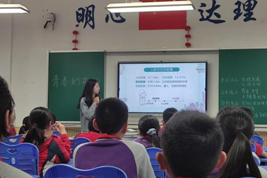 此次授课分为三个环节。第一个环节中,教师通过“击鼓传花”游戏导入课堂,调动学生积极性,让学生探讨男女生的不同之处,由此引出第二个环节“我们的烦恼”;随后教师邀请学生进行情境表演、案例分析,让学生针对男女交往的烦恼分享感受、分析原因、提出建议;第三个环节“男女交往要有度”中,教师通过活动“我坐在哪里?”帮助学生掌握适当的交往距离,并传授男女交往的小口诀。课后,其他成员对课程进行点评,提出实用性的建议。