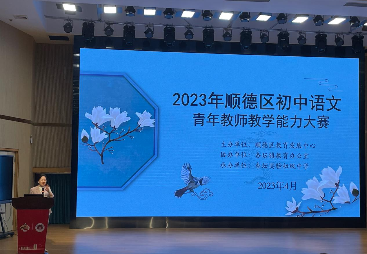 (通讯员 郑晓茜 赵晨西 仇甄)4月13日下午,广东省佛山市顺德区2023年初中语文教师教学能力大赛现场答辩环节在杏坛实验初级中学杏荟楼三楼报告厅举行。此次答辩环节由杏坛实验初级中学徐瑞老师主持,实习队队员全程观摩学习。