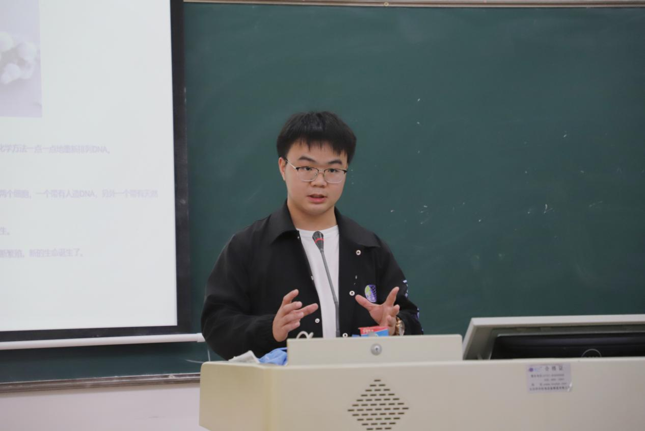 (通讯员 刘彬 张晰然 毛烨宇)4月12日中午,生命科学学院团委青年创新创业指导中心于生科院三号楼B107教室举办“步生物之境,享合成之趣”精勤讲堂。院2020级生物技术班胡聂文担任此次活动主讲人,院团委青年创新创业指导中心干事刘慧祺担任主持人。