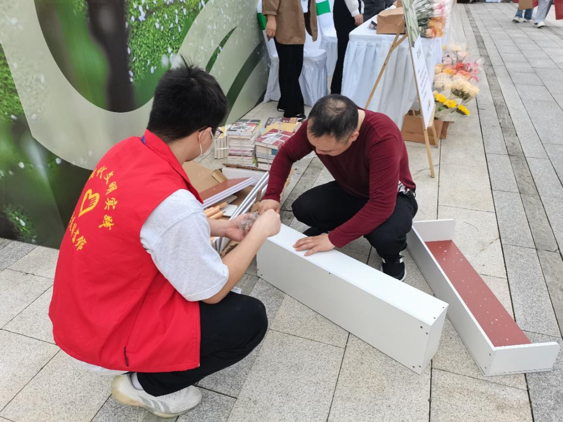 活动开展前,志愿者维持活动现场的秩序,引导参与者们及时有序入座,并协助开展开幕式活动。开幕式后,活动主办方开展“一书换一花”公益捐书活动。志愿者们组织引导群众参加活动,辅助工作人员做好登记工作,并捐赠自带书籍。读书爱好者带来的书籍涉及古典文学、自然科学、经济管理、心理健康、国学、诗歌等多种类型,他们在书籍上编号,设计推荐词并附上寄语卡片。