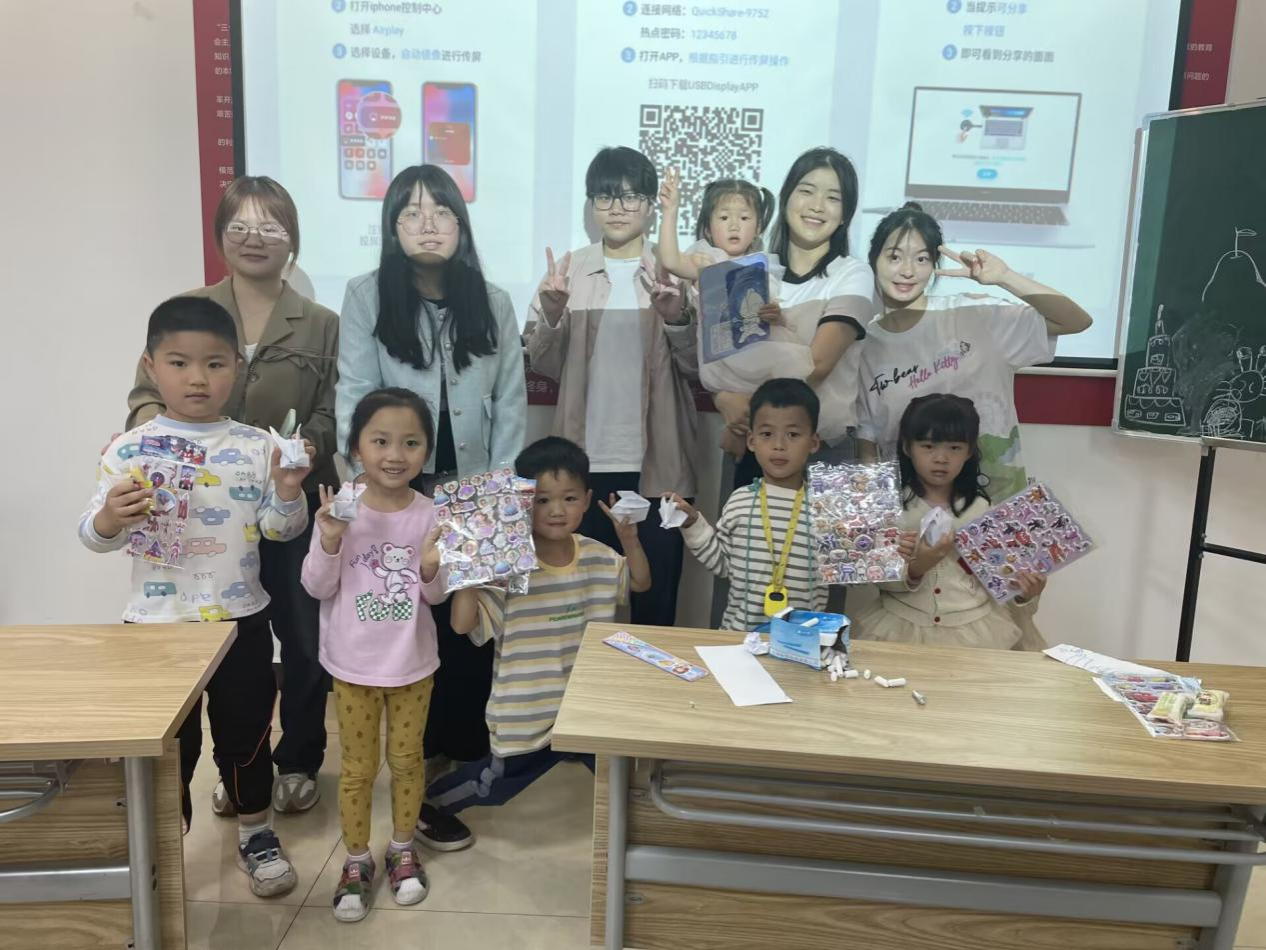 在此次活动中,志愿者讲解生动,提升自身口语表达能力、丰富教师实践技能。在活动结束后,志愿者分享活动心得、总结得失,为下一次的志愿活动做准备。与此同时,孩子们在课堂上结交新朋友共同学习,获得了丰富知识;积极主动提出问题、回答问题、上台活动,锻炼了语言组织表达能力。