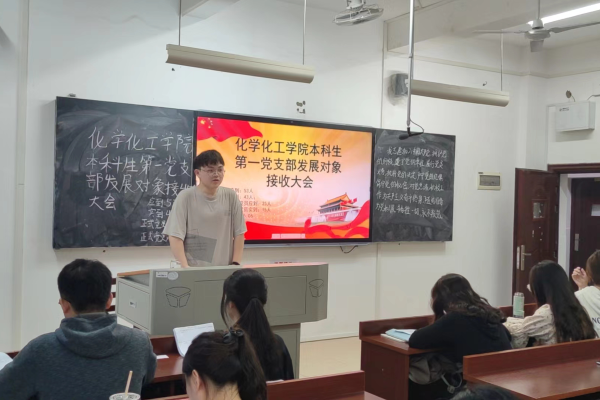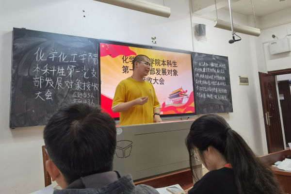 (通讯员 吴碧雯 邱璇 刘耘亦)5月6日中午,化学化工学院第一党支部于化工院210教室召开发展对象接收大会。出席此次会议的有十五名正式党员,以及19级和20级部分预备党员。此次大会由高杰主持。