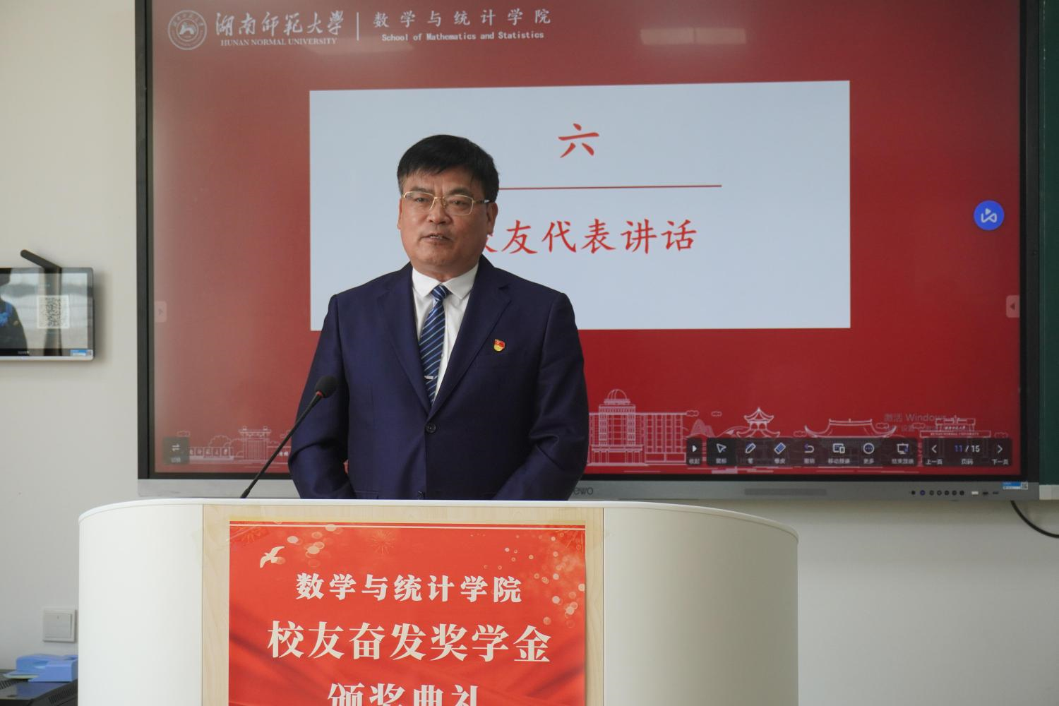 陈迪勋代表与会校友对获奖同学表示祝贺。他以自身经历勉励获奖同学持之以恒、奋发图强,继续提升自我,以积极的态度投身数学研究及数学教育中。