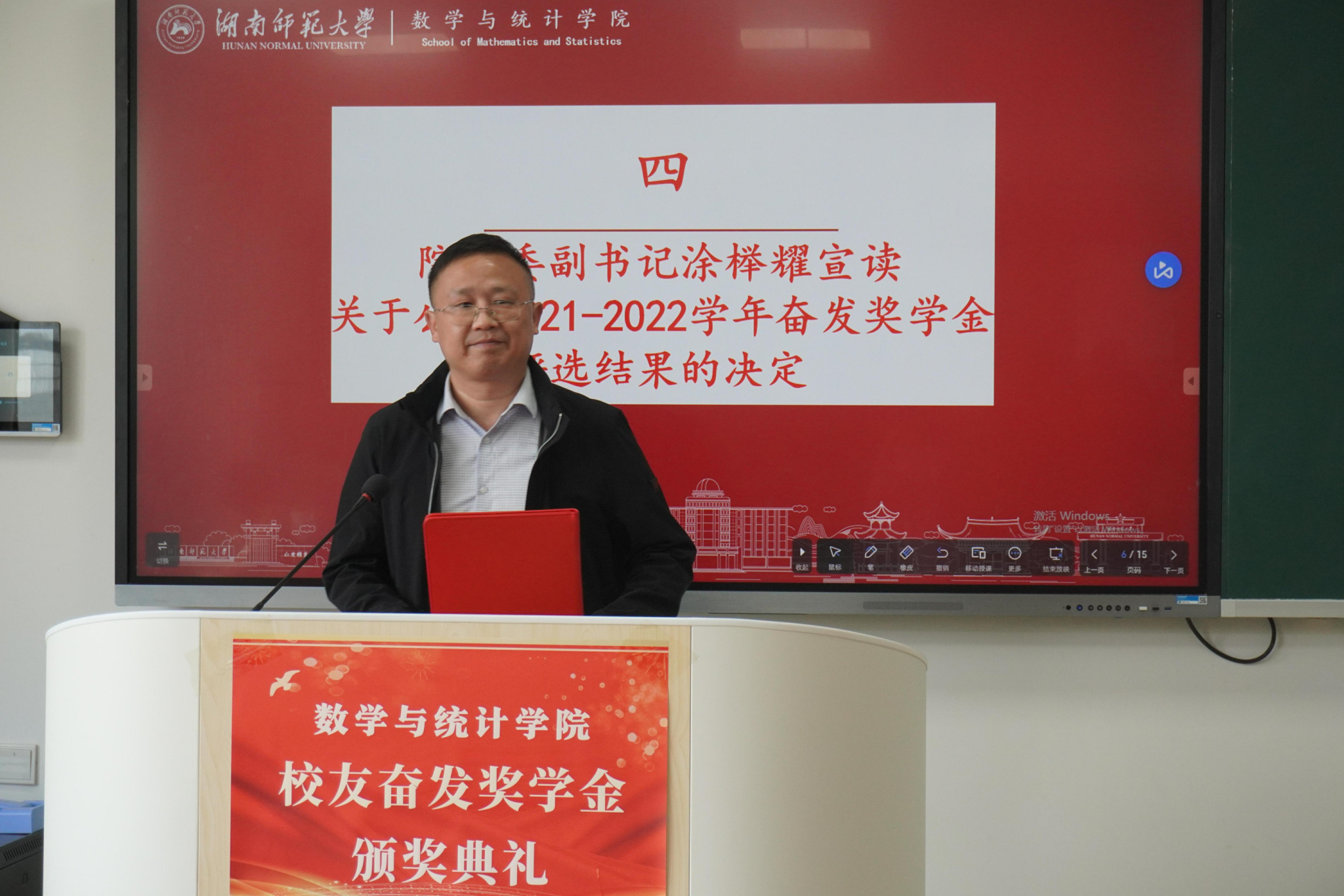 此次奋发奖学金颁奖典礼旨在嘉奖学院先进学生代表,以此激励数统院学子汲取榜样力量,砥砺前行,涵养优良学风。
