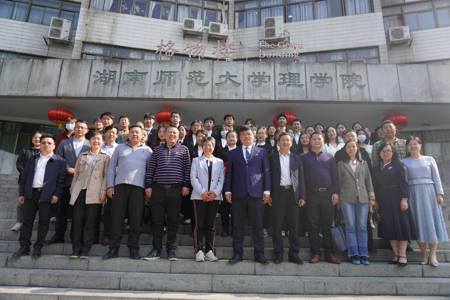 典礼结束,与会成员移步格物楼大门处合影留念。