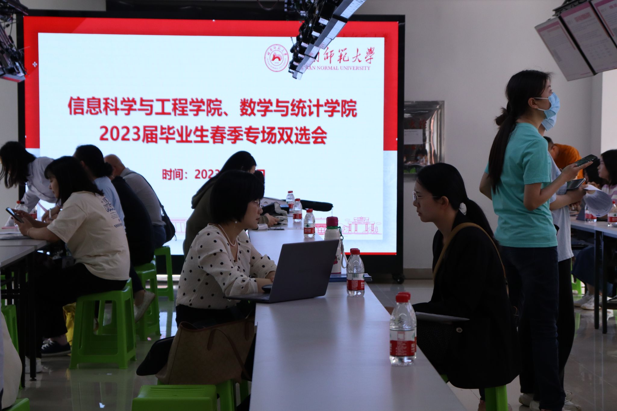 (通讯员 黄扬涵)为切实做好2023届毕业生就业服务工作,搭建毕业生与用人单位沟通的桥梁,推动用人单位与学生之间更加精准对接,5月9日下午,信息科学与工程学院(以下简称“信息院”)与数学与统计学院(以下简称“数统院”)于威廉希尔中文网站平台招生与就业指导处学生职业发展中心联合举办2023届毕业生春季专场招聘会。信息院党委书记李常枫、行政副院长余小莉、党委副书记周劲松、学工办主任刘植、团委副书记肖笛莅临现场指导。