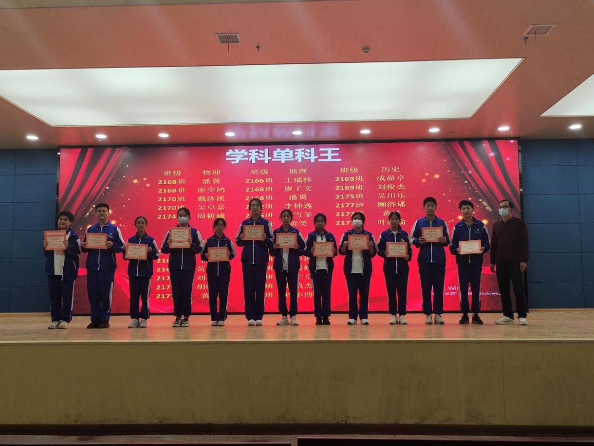 大会正式开始之前,全体实习班主任组织各班学生有序进入多功能报告厅,坐在指定位置,认真管理班级纪律,维持大会秩序,保证大会按时召开,流程顺利推进。大会第一项,组长何义华对在期中考试中获得优秀的个人和班级进行表彰。实习队成员引导学生领奖,为学生颁发奖状并拍照纪念。大会第二、三项,组长何义华和主任张奔胜分别对教学和学生学习情况进行分析总结。大会期间,全体实习班主任始认真管理各班纪律,保障大会圆满完成。大会结束后,各实习班主任带领学生回到教室,对班级半期情况进行总结,并提出后续学习要求,展望生地会考。