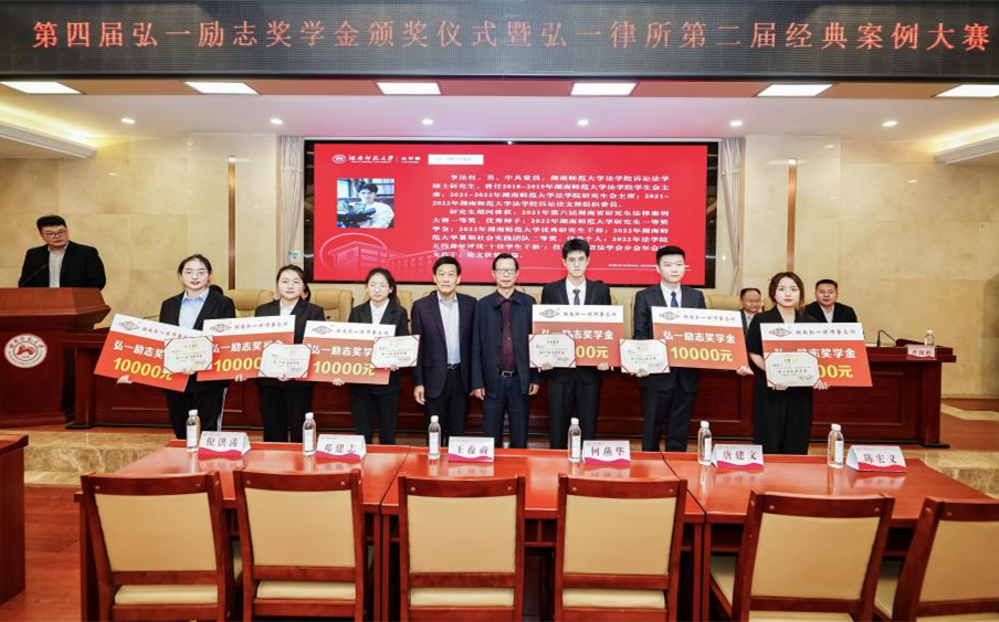 据悉,2018年,湖南弘一律师事务所向威廉希尔中文网站平台捐资50万元设立“弘一励志奖学金”,旨在表彰威廉希尔中文网站平台法科专业品学兼优的励志模范和榜样人物,目前已有50余位同学受益。自2023年开始,对每位奖学金获得者奖励1万元。该奖学金的设立,有效激发了法律专业学子刻苦求学、励志科研,热心公益、艰苦创业,奋发进取的精神,同时加强了法学院与弘一律所的合作交流和共建共赢。