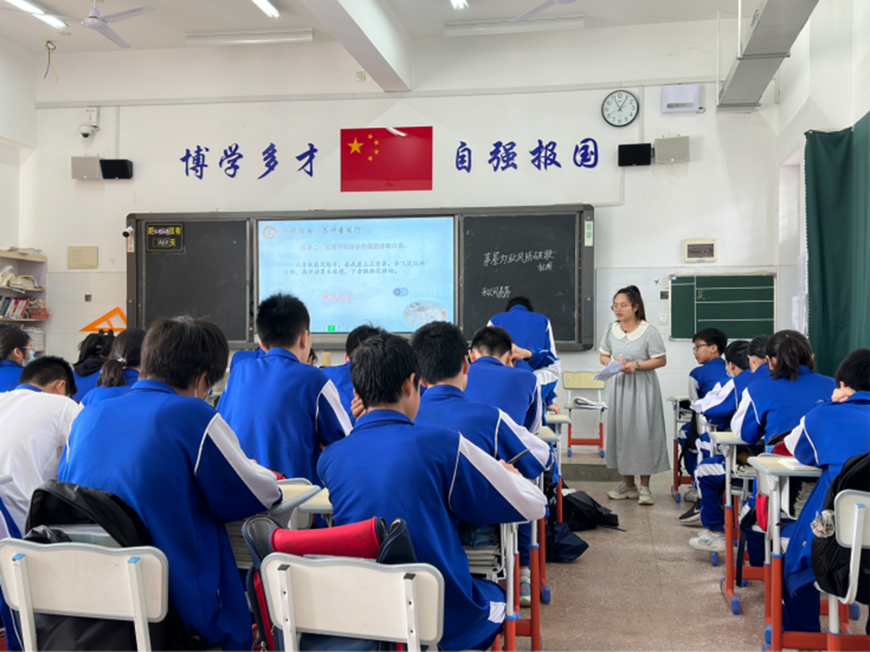 王琴主讲《茅屋为秋风所破歌》。她由杜甫对联导入,设计“低吟浅唱,代诗圣发言”、“入境描画,于诗圣同行”、“品词赏句,为师生画像”,“知人论世,悟诗圣情怀”五个环节,以朗诵、问题、讨论三个任务贯穿整个课堂。语言精炼典雅,体现了较好的文字功底。队长邓睿指出,王琴在课堂上循循善诱,但是作为创新点的表演流程并不突出,没有展现出“演”的特质。郭鹏飞表示王老师这堂课内容丰富,但是逻辑有些混乱,需要通过简化内容,重新设计环节,梳理出更加清晰的逻辑,并指导各位队员,在古诗词教学中,一定不能让学生只知其然而不知其所以然,要讲得准确、透彻。