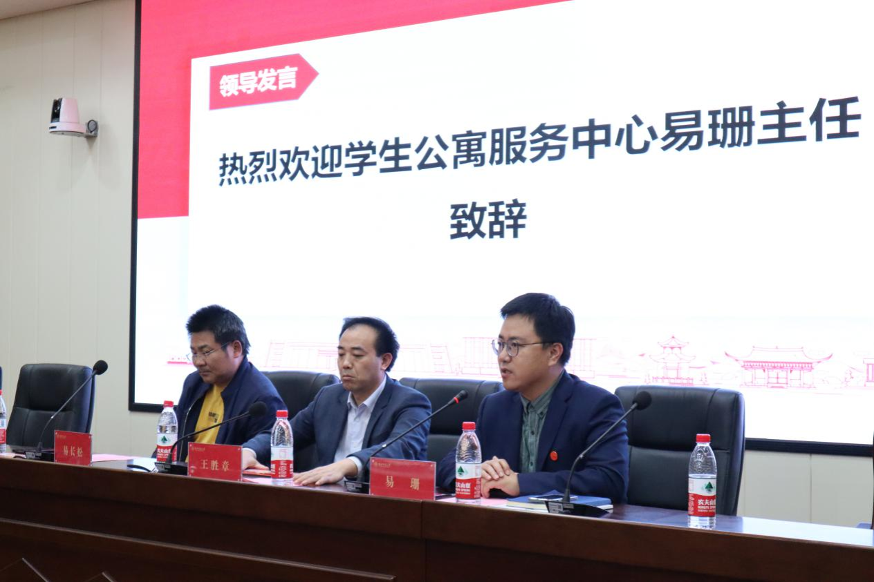 (通讯员 彭玉淳 钟名洋 李家成)为充分发挥党员的带头模范作用,加强寝风建设,推动文明寝室的创建,5月11日下午,学生公寓服务中心围绕“我是党员我带头,寝风建设我争优”这一主题,在中和楼二楼中和讲堂举办“学生党员寝室”挂牌暨“党员安全卫生示范寝室”创建活动启动仪式。后勤管理处领导、学生公寓服务中心全体在职老师、学堂坡宿舍区非毕业班本科生学生党员(含预备党员)参会。后勤集团党委书记王胜章、后勤管理处副处长易长松出席,后勤管理处学生服务中心主任易珊出席并讲话,活动由学生公寓服务中心老师何艺源主持。