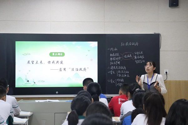 汇报会伊始,实习队代表喻柳晴及杨思思分别在岳实录播教室进行公开课展示。对于她们的表现,岳实高一政治教研组组长刘景凤给予肯定,她称赞两位实习老师的课堂设计和知识呈现十分精彩,并祝愿各位实习老师善学善思、不负韶华。教研室主任李平贵则对实习队员刻苦钻研的精神及马院对于培养师范生的卓越能力表示赞赏。伍屏芝指出两场公开课均采用议题式教学,其理念和方法可圈可点,同时赞扬岳实学生思维活跃,并感谢岳实对于马院实习工作的大力支持。