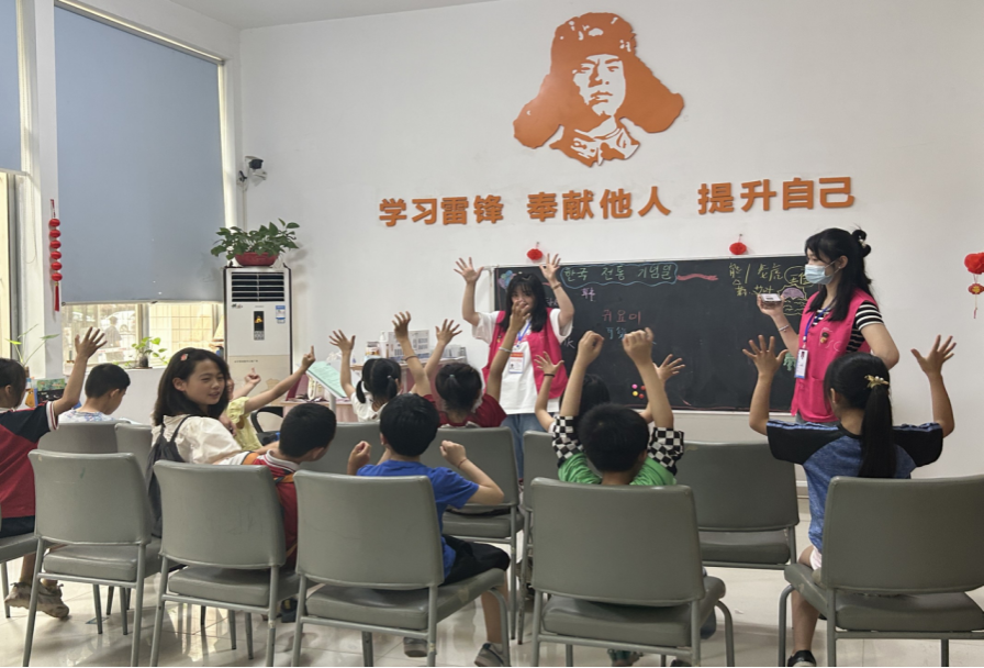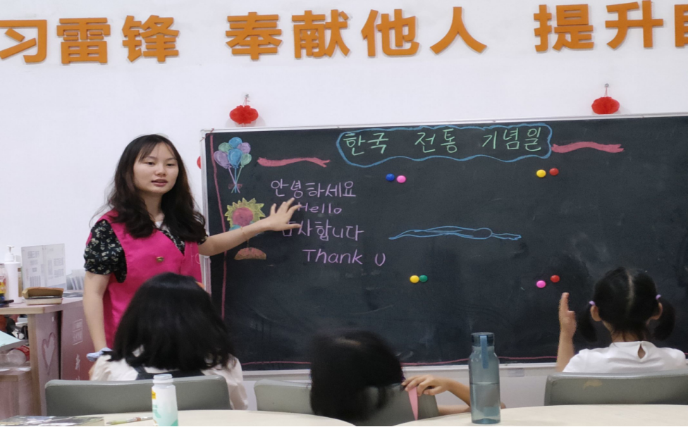 (通讯员 沈润 向璐 朱耘)5月20日上午,由外国语学院(以下简称“外院”)团委区校共建项目部主办的“学识付诸实践,语言点亮未来”国别文化课堂志愿活动于学堂坡社区公共服务中心举行,来自外院的四名志愿者以“中韩传统节日”为主题,为小朋友们带来了一堂别具一格的文化分享课。