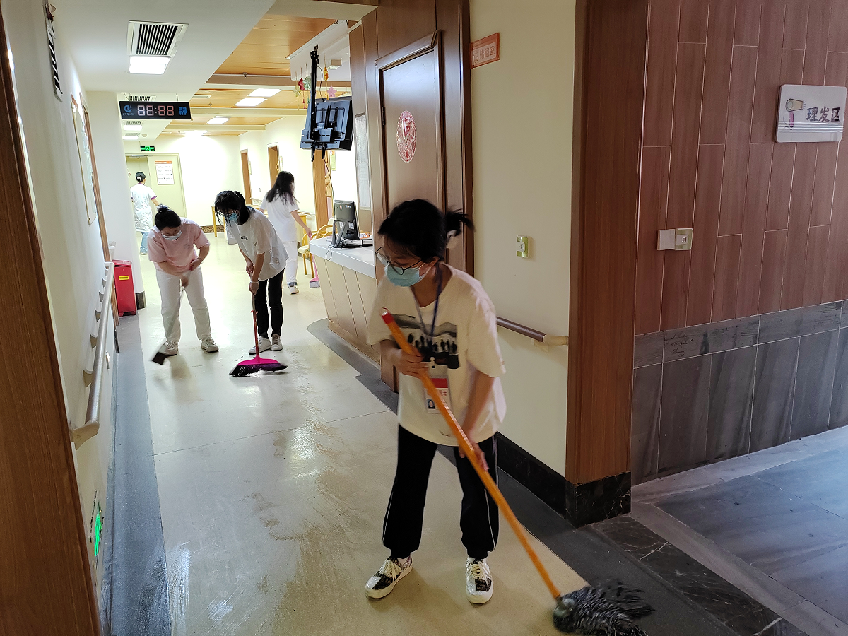 活动当天,志愿者们前往普亲老年养护院,在工作人员有序安排和分工下开展活动。志愿者们首先被分为两组,分头在养老的楼道、走廊等处认真清扫过道的垃圾、积极排查安全隐患,为老人们营造安全的生活环境。完成打扫卫生工作后,志愿者们来到养老院天台整理杂物、做好绿化,在工作人员的指引下为老人合唱红歌,让养老院更加干净宜居,为老人带去更多欢乐。活动结束后,志愿者们在养老院门口合影留念。
