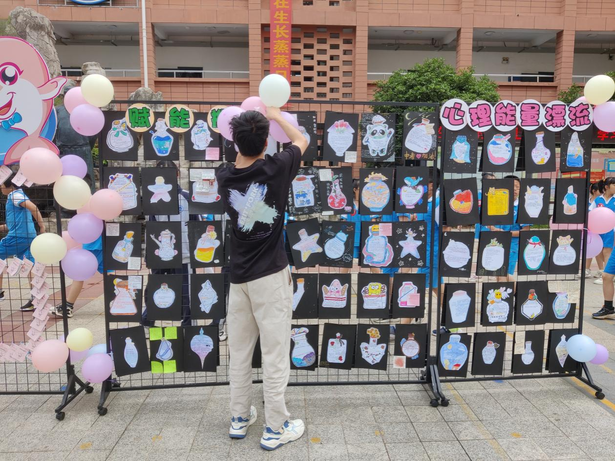 (通讯员 王九九 龚世康 张瑶)为贯彻落实“用心赋能,知心育人”政策,5月23日上午,师大滨江全体心理老师与教育科学学院赴师大滨江实习队全体实习队员在晴天广场组织开展5·25心理漂流瓶活动。此次活动由师大滨江老师王甜浩负责,实习队员胡帆、钟辉、岳君瑶、邱琳溪月协助举办。