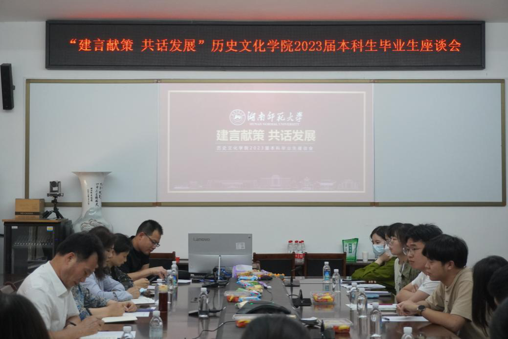 (通讯员 刘妍 白义婧 杨媚)5月27日下午,历史文化学院于111会议室开展以“建言献策,共话发展”为主题的2023届本科生毕业座谈会,院党委书记孔春辉、院长钟声、党委副书记兼专职组织员马欣、副院长刘利民出席此次会议,2023届毕业生代表参加。