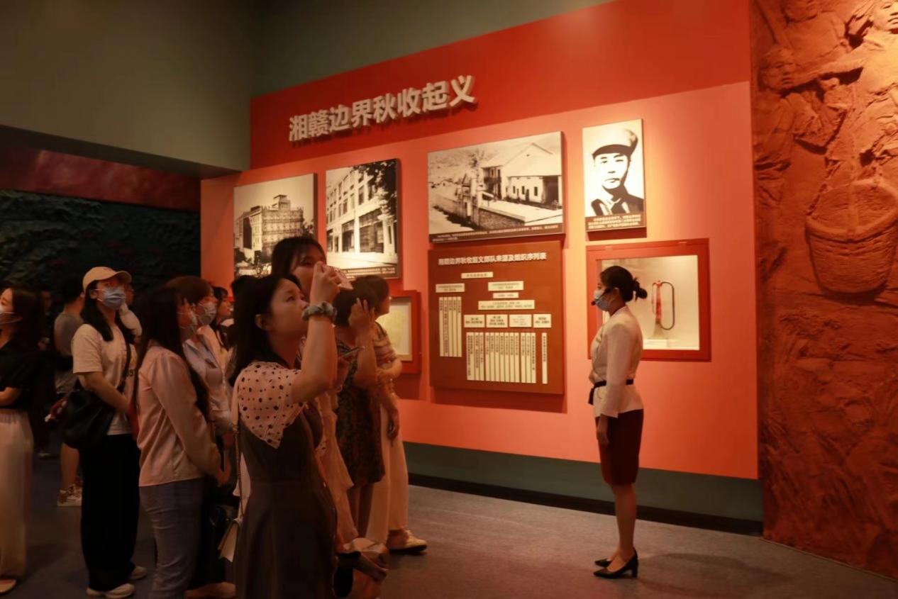 活动伊始,大家在各支部书记的组织下合影。随后,大家在讲解员的带领下认真观看“敢教日月换新天”中国共产党湖南历史陈列,共同温习“开辟新天地”“描绘新画卷”“谱写新篇章”“奋进新时代”党史篇章,并向“三湘群英谱”湖南党史人物学习,深入了解党的湖南发展史与中国共产党艰苦奋斗,波澜壮阔的发展历程,感悟老一辈共产党人的伟大初心与奋进力量,进而不断筑牢信仰之基、补足精神之钙、把稳思想之舵,以坚定的理想信念砥砺对党的赤诚忠心。