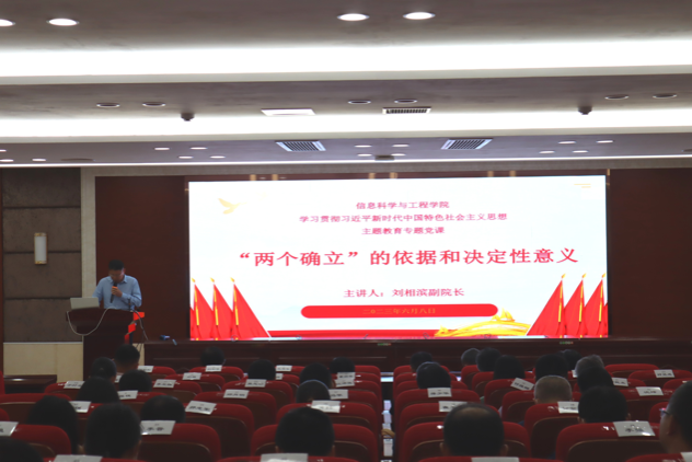 (通讯员 刘欣丽 何嘉伦)6月8日下午,信息科学与工程学院开展了以“'两个确立'的依据和决定性意义”为主题的主题教育专题党课,主讲人为学院刘相滨副院长。