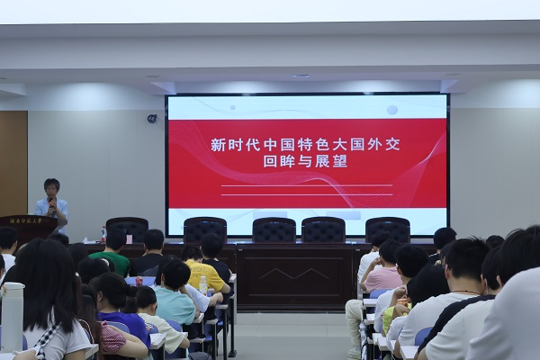 (通讯员 唐亘嫣 刘薇 蒲佳莹)6月8日下午,数学与统计学院(以下简称“数统院”)于格物楼309报告厅开展形势与政策课程,此次课程以“新时代中国特色大国外交回眸与展望”为主题,由院党委书记颜中玉担任主讲人。据悉,数统院2022级全体学生参与此次课程的学习。