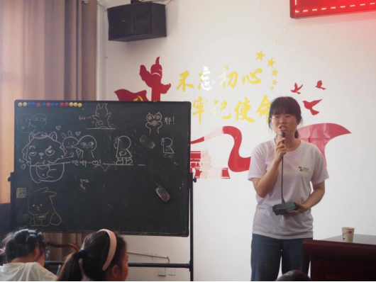 (通讯员 叶丽娅 吴美燃 曾靖雯)7月3日上午,在大坪村妇女主任王晓娟的帮助和支持下,公共管理学院(以下简称“公管院”)艺智营教学组在益阳市安化县羊角塘镇大坪村村民服务中心开展教学活动。此次教学由教学组曾晔、谢佳君负责,曾晔负责地理课程和天文课程的教学,谢佳君负责简笔画课程的教学,共有年龄跨度为5-12岁的58位小朋友参与。