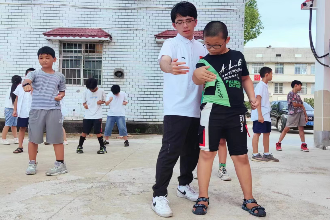 在一天的支教活动中,队员们合理分配课时,上午主要进行文化课教学,中午开展作业辅导活动,下午开设咏春武术特色课、舞蹈课、合唱课等艺术课程。此次支教活动旨在拓宽乡村孩童视野,塑造学生们积极向上的世界观、人生观、价值观。