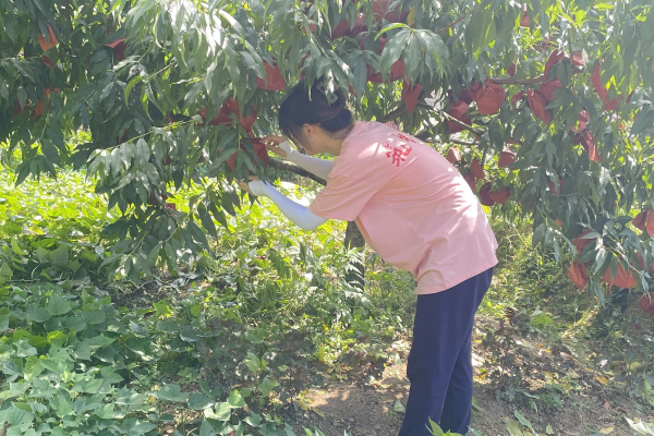 实践团成员通过走访询问的调研方式,对黄桃产业园附近的村民和相关负责人进行采访。通过这次调查,成员们学习到一些与黄桃种植有关的知识,例如黄桃适宜种植在海拔较高,水资源较好,阳光较充足的地方;在采摘之前对黄桃进行套袋保护不仅能防治病虫害,减少农药残留和裂果数量,还能改善果面色泽,保障果品质量,可有效提升黄桃销量。
