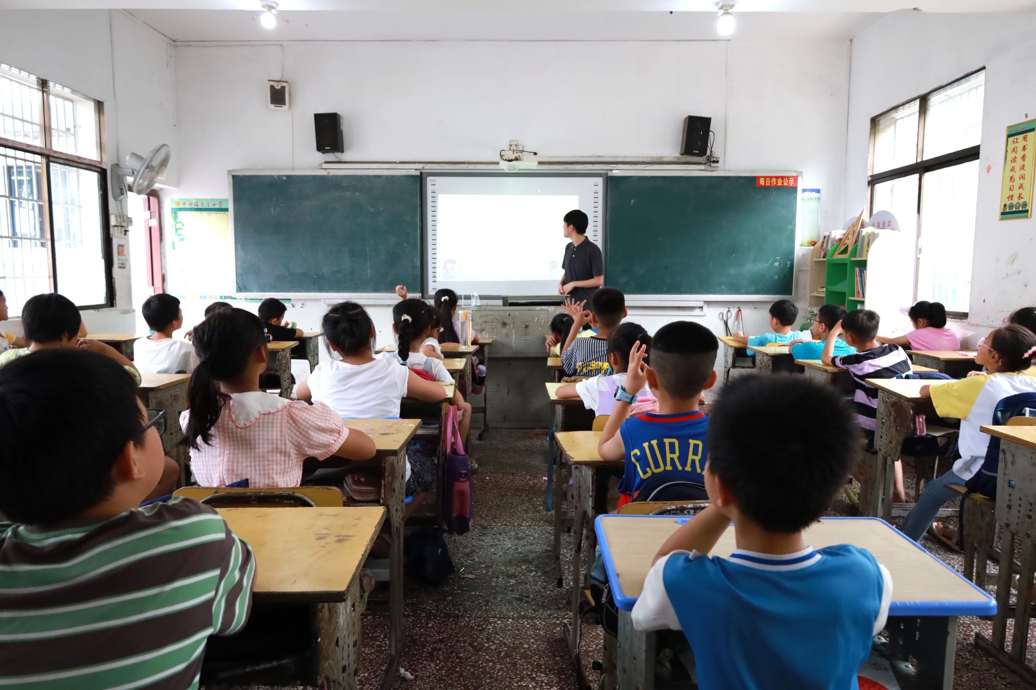(通讯员 张泽宇 何婉玉)7月7日上午,教育科学学院赴益阳市桃江县暑期社会实践团开展了特色手语课程。此次课程由张泽宇担任主讲老师,牛田镇完全小学三年级35名同学参与了此次课程。