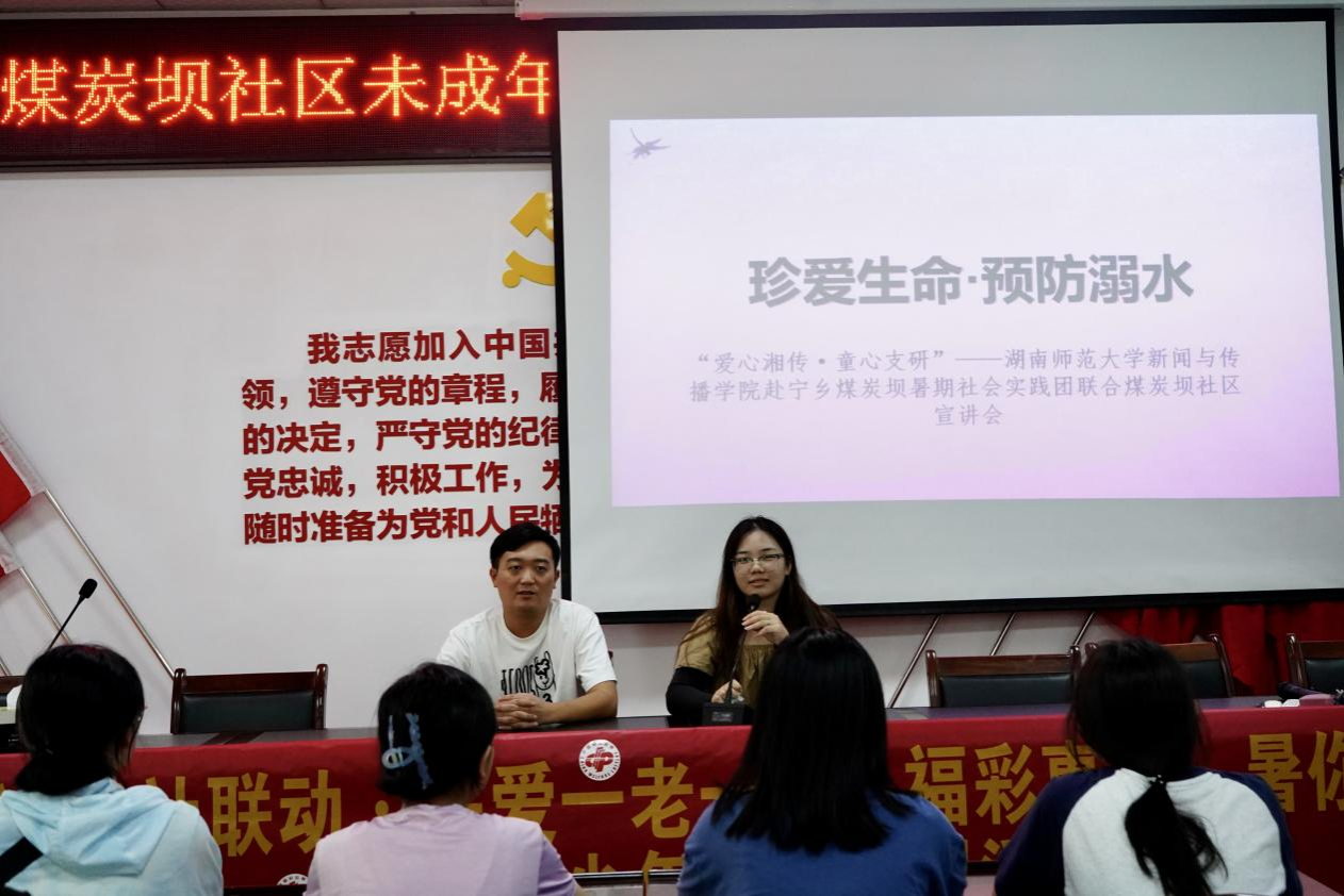 (通讯员 蔡田甜)7月7日,“爱心湘传,童心支研”——威廉希尔中文网站平台新闻与传播学院赴宁乡市煤炭坝暑期社会实践团联合湖南美心社会工作服务中心组成宣讲团,在煤炭坝社区居民委员会会议室举行防溺水宣讲会,教育引导社区青少年儿童,不做孤“泳”者。