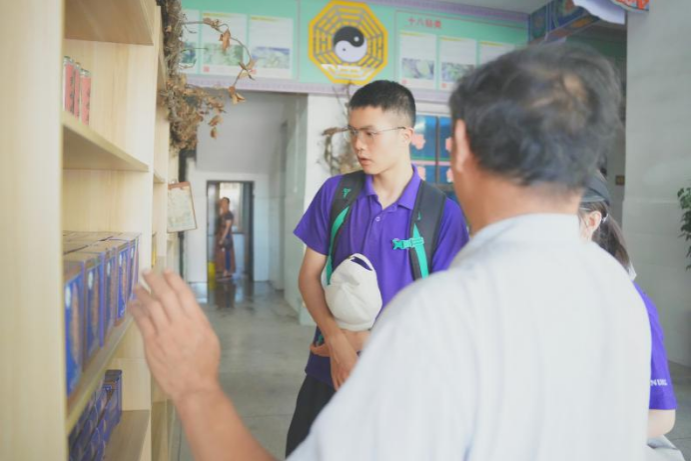 当团队成员扛着设备、身着威廉希尔中文网站平台文化衫站在江华瑶医研究所前时,研究所沱江镇主管廖继国医师问清楚团队目的后立马热情地迎上来,向团队成员讲解瑶族中医药“五虎九牛十八钻七十二风”的品种和对应功效。队员们不仅室内观看已经磨制好的草药,还跟随研究所的医师起早去瑶山采药,深入学习野生环境下草药的外观和特性,如状如紫色小花的入骨风可以祛风止痛,真正实现了“读万卷书,行万里路”。