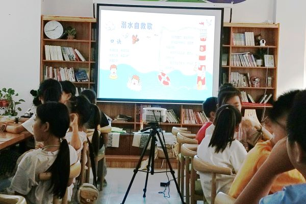 此次课程从如何远离野外危险水域、游泳注意事项、同伴落水的应对措施、自己落水如何自救四个方面开展,引导孩子们关注生命安全,应对溺水的危急情况时做到临危不乱,在危险时刻能够挽救自己与同伴的生命。在课程中,孩子们认真听讲,态度端正,积极主动地学习相关知识。在背记重点口诀时,他们在短时间内记住关键口诀,为之后的安全教育相关课程的开展打下了坚实的基础。