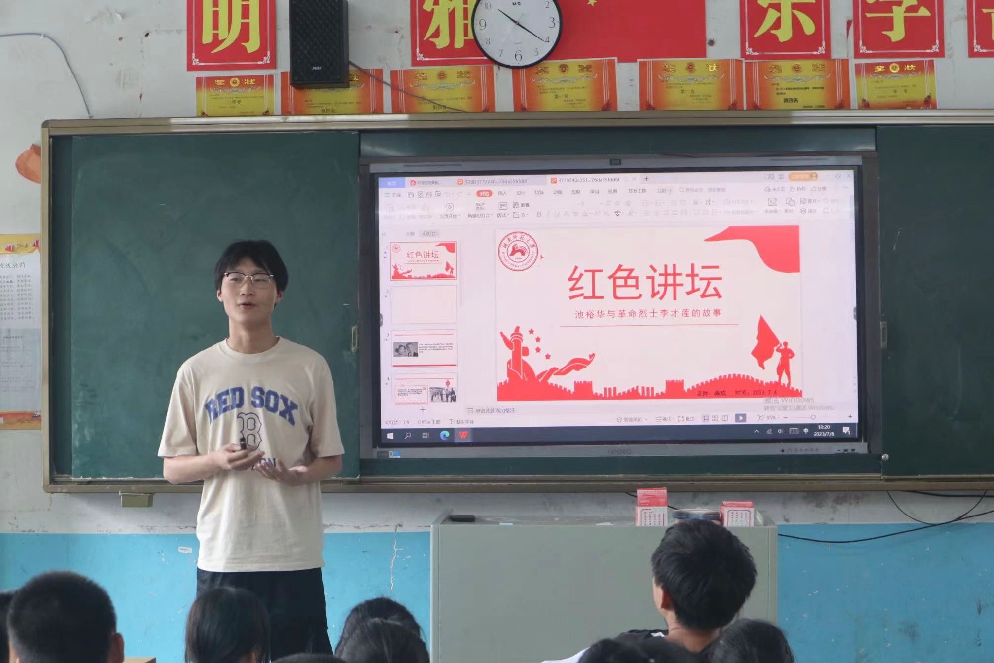 (通讯员 欧阳辰姗 王贻菲 罗珮雯)为深入学习贯彻习近平总书记重要讲话精神,宣传红色精神,重温红色记忆,7月7日上午,物理与电子科学学院“新”火相传支教队在新晃侗族自治县步头降苗族自治县学校开展《学“四史”,讲故事》特色课程。支教队队员龚成担任主讲人,步头降苗族自治县学校三到八年级共64名学生参与课程。
